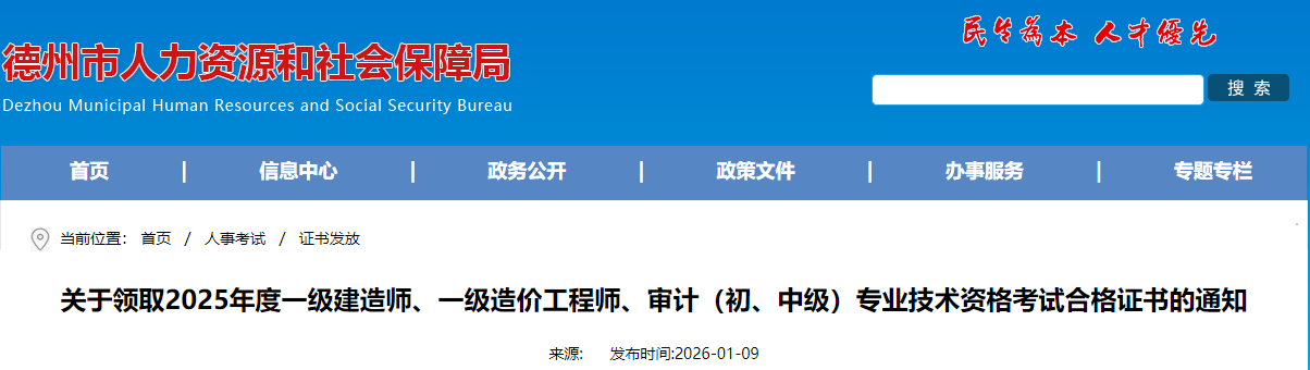 山東省德州市2025年度一級造價(jià)工程師證書領(lǐng)取通知已發(fā)布,詳情如下: