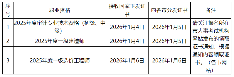 山東省2025年度一級造價工程師考試證書發(fā)放狀態(tài)更新!各市分發(fā)證書時間為2026年1月6日,詳情如下: