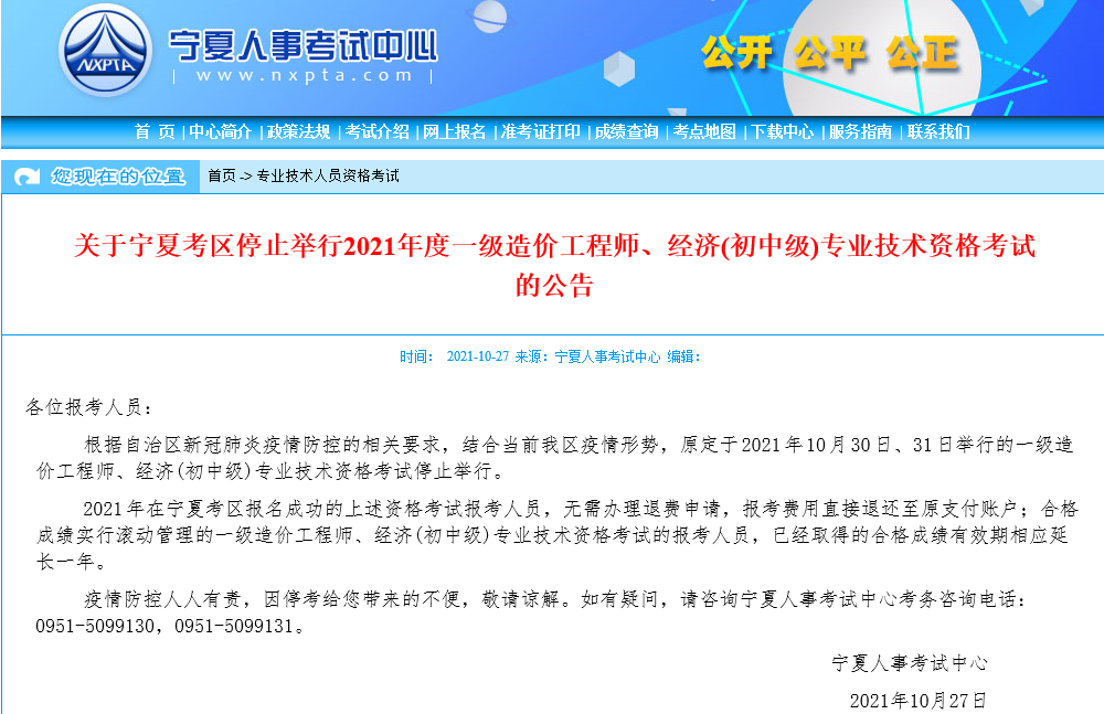 2021年一級造價(jià)師考試即將來臨,原定寧夏2021年一級造價(jià)師考試時(shí)間在2021年10月30日-2021年10月31日,但是因?yàn)橐咔?,寧?/span>人事考試中心發(fā)布2021年一級造價(jià)師停考通知,并且提示2021年在寧夏考區(qū)報(bào)名成功的一級造價(jià)師考試報(bào)考人員,無需辦理退費(fèi)申請,報(bào)考費(fèi)用直接退還至原支付賬戶;合格成績實(shí)行滾動(dòng)管理的一級造價(jià)工程師考試的報(bào)考人員,已經(jīng)取得的合格成績有效期相應(yīng)延長一年。