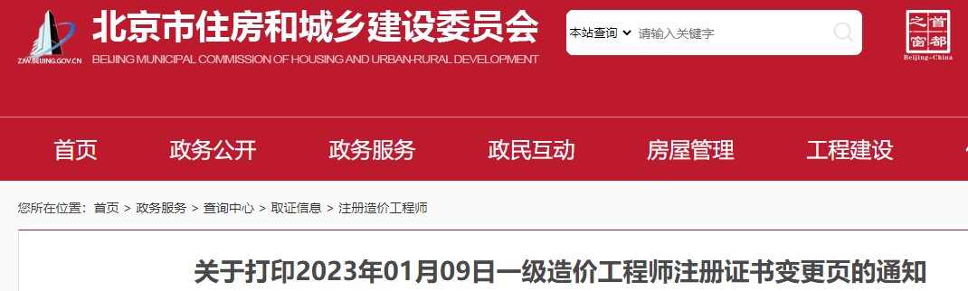 北京關(guān)于打印2023年01月09日一級造價工程師注冊證書變更頁的通知