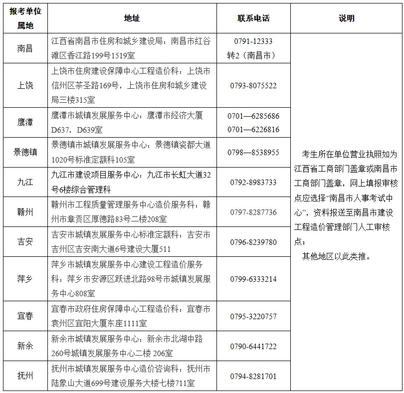 3.江西省一級造價工程師土建、安裝專業(yè)報考資格送審地址及聯(lián)系電話表