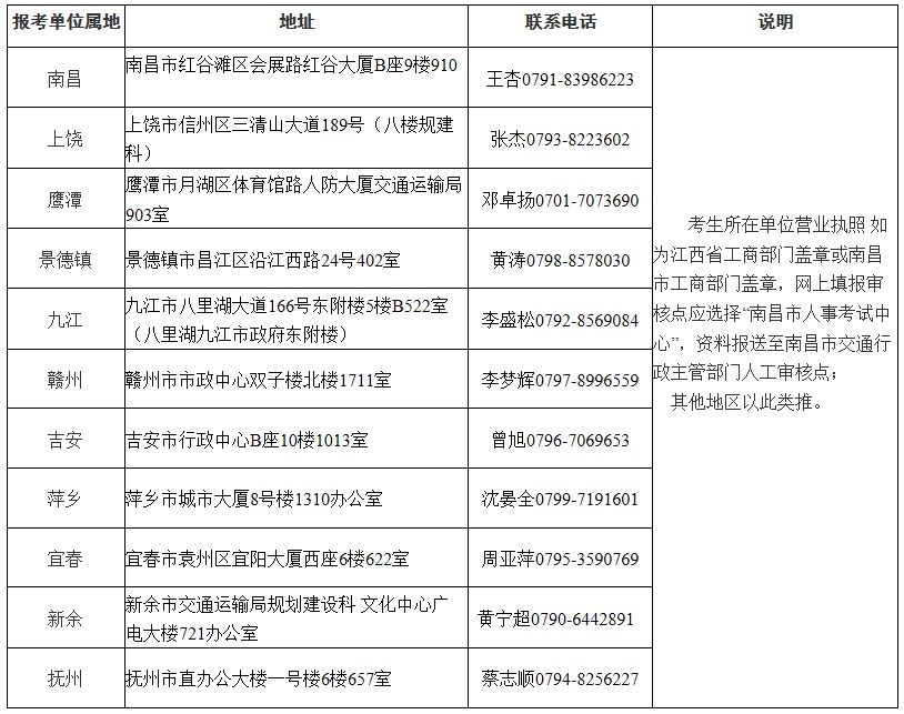 5.江西省一級造價工程師交通專業(yè)報考資格送審地址及聯(lián)系電話表