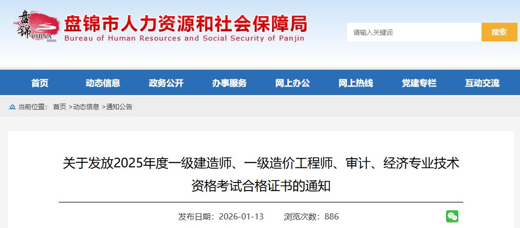 遼寧省盤錦市2025年度一級造價工程師資格證書發(fā)放通知