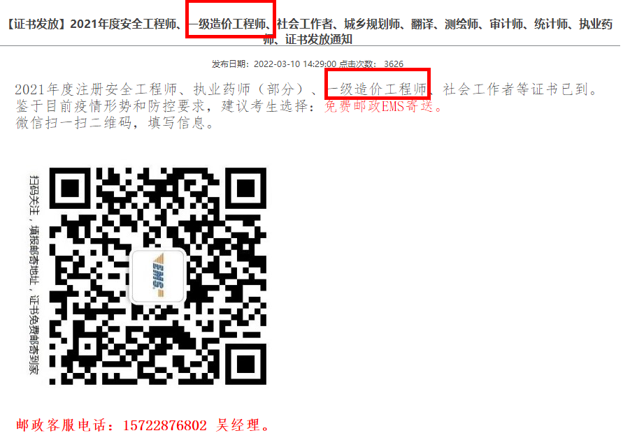 2021年度注冊(cè)安全工程師、執(zhí)業(yè)藥師(部分)、一級(jí)造價(jià)工程師、社會(huì)工作者等證書已到。