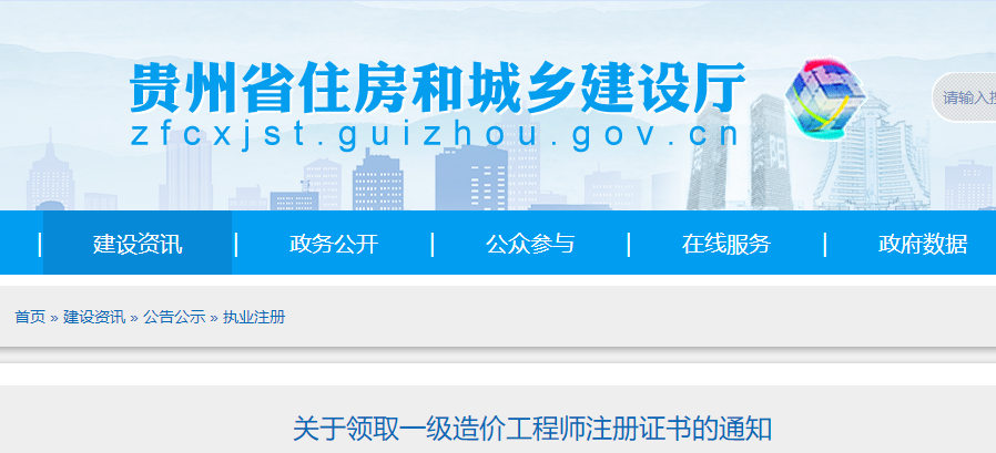 關(guān)于貴州領(lǐng)取一級(jí)造價(jià)工程師注冊(cè)證書的通知