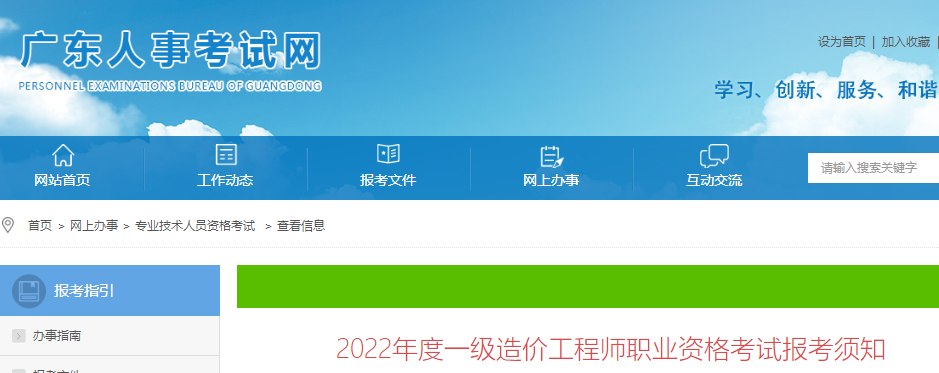 根據(jù)人力資源和社會(huì)保障部人事考試中心《關(guān)于2022年度一級(jí)造價(jià)工程師職業(yè)資格考試考務(wù)工作的通知》(人考中心函〔2022〕53號(hào))和廣東省人力資源和社會(huì)保障廳《關(guān)于廣東省人力資源社會(huì)保障系統(tǒng)2022年度專(zhuān)業(yè)技術(shù)人員職業(yè)資格考試計(jì)劃及有關(guān)事項(xiàng)的通知》(粵人社函〔2022〕21號(hào))要求,為方便廣大考生報(bào)考該項(xiàng)考試,現(xiàn)將有關(guān)事項(xiàng)告知如下。