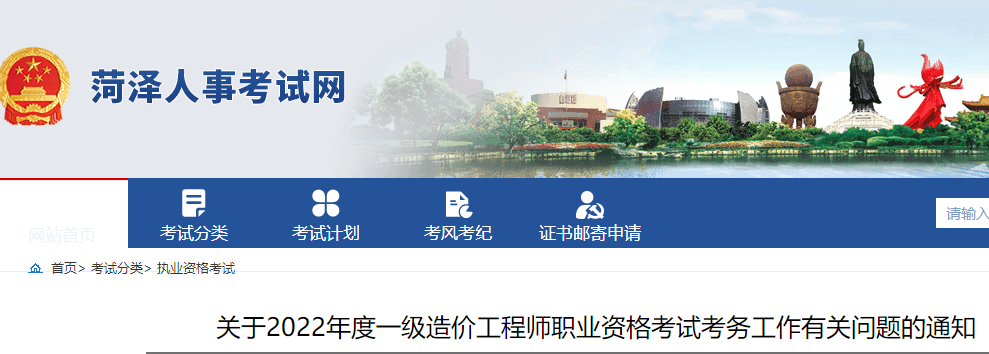 菏澤2022年一級(jí)造價(jià)工程師職業(yè)資格考試考務(wù)工作有關(guān)問題的通知