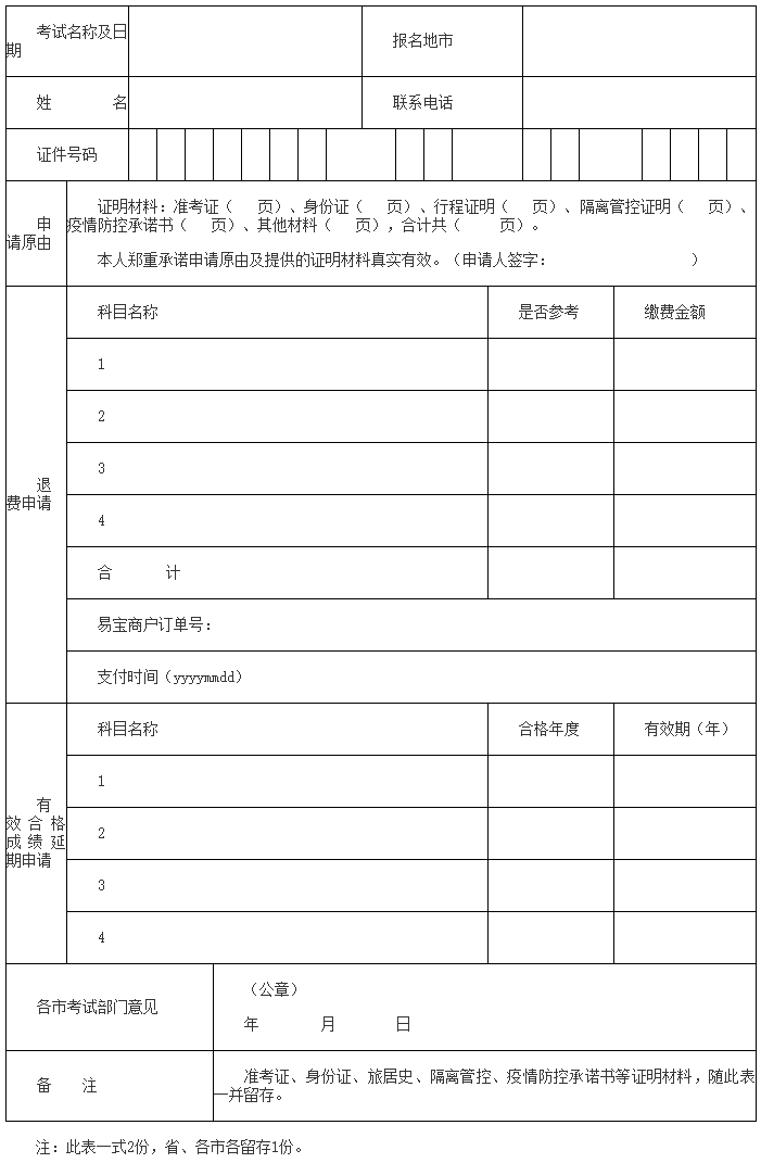 因疫情管控?zé)o法參加考試人員相關(guān)業(yè)務(wù)申請(qǐng)表