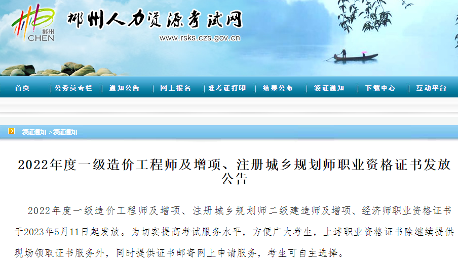 湖南郴州2022年一級(jí)造價(jià)工程師及增項(xiàng)職業(yè)資格證書(shū)發(fā)放公告