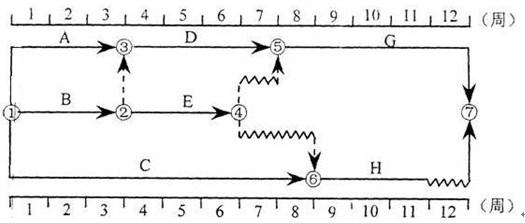 某工程雙代號時標(biāo)網(wǎng)絡(luò)計(jì)劃如下圖所示,其中工作E的自由時差為(   )。