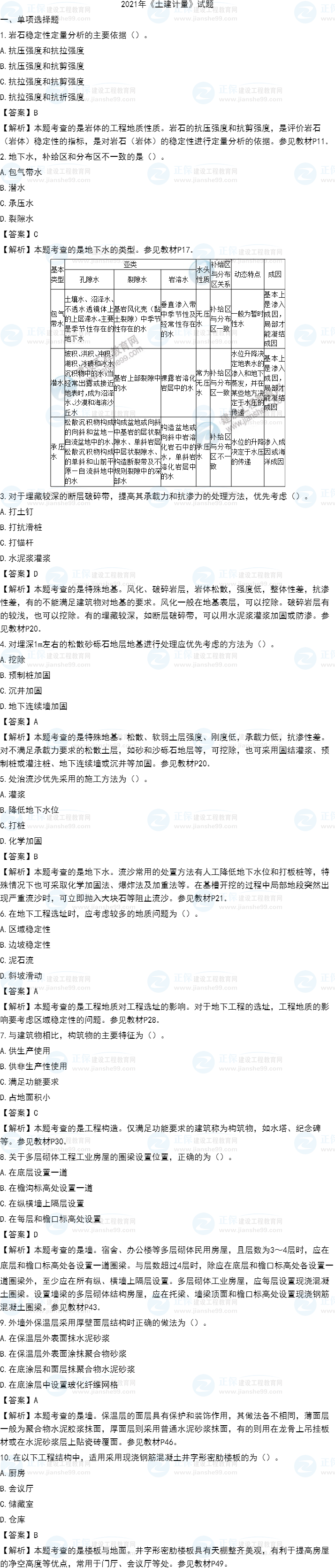 2021年一級造價師《土建計量》試題答案及解析1-10