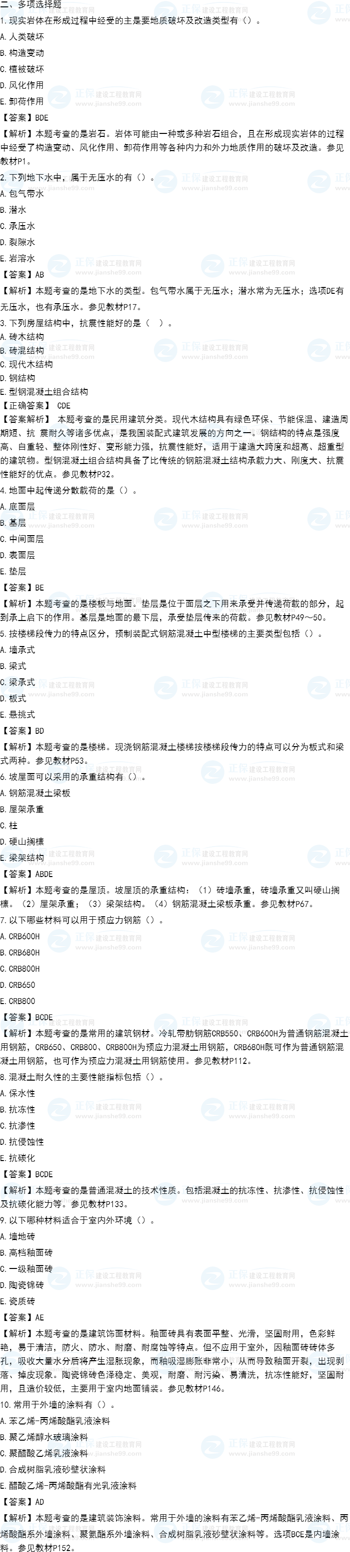 2021年一級造價師《土建計(jì)量》試題答案及解析61-70