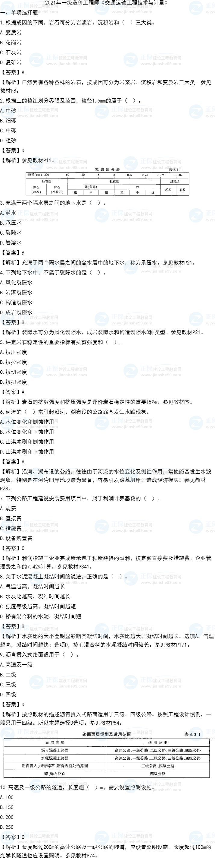 2021年一級(jí)造價(jià)師《交通計(jì)量》試題答案及解析1-10