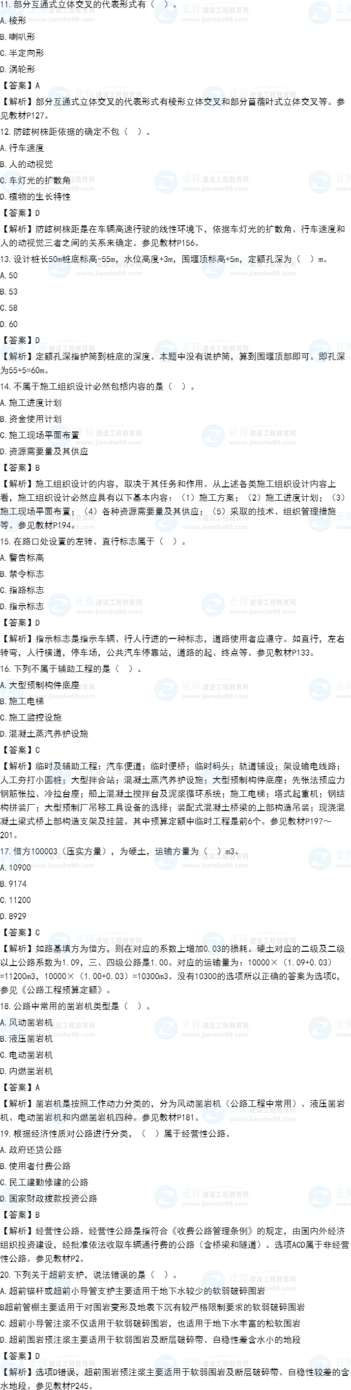 2021年一級(jí)造價(jià)師《交通計(jì)量》試題答案及解析11-20