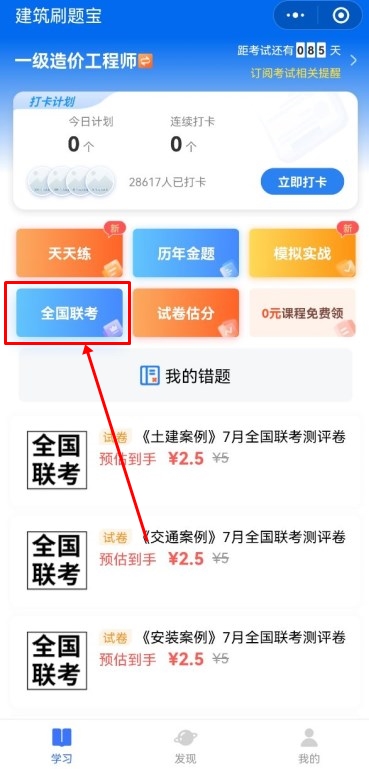 點(diǎn)擊“全國(guó)聯(lián)考”進(jìn)入考試入口。