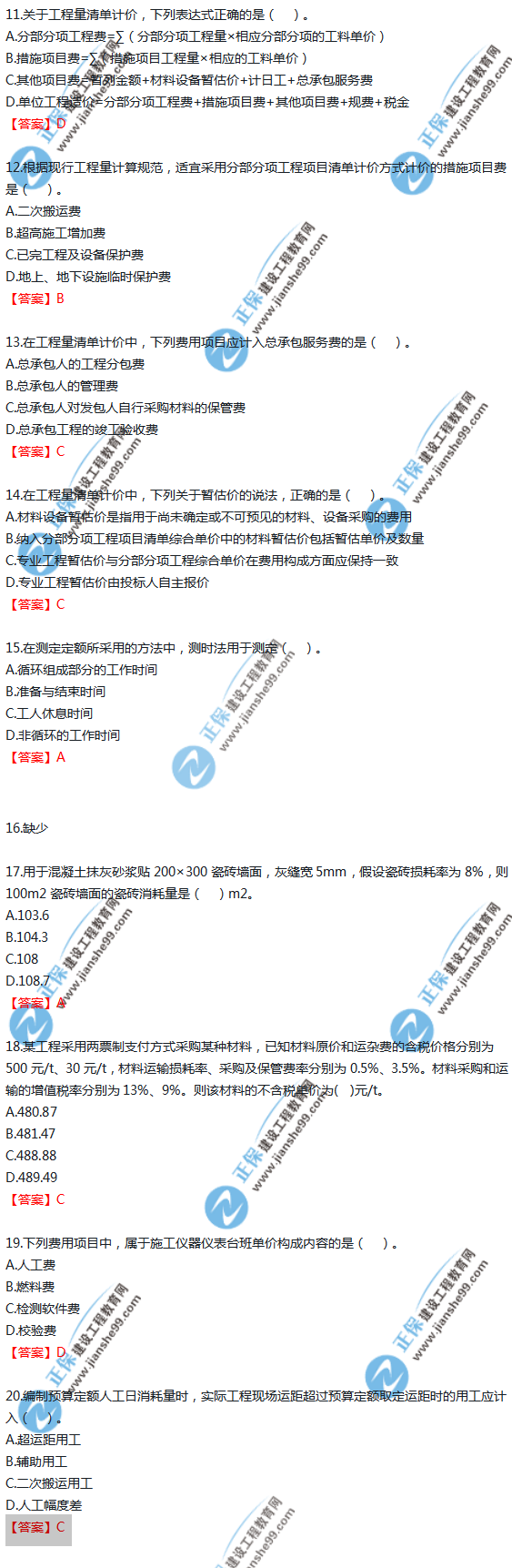 以上就是為大家分享的2019年一級造價師《建設(shè)工程計價》試題及答案解析11-20,建設(shè)工程教育網(wǎng)將持續(xù)關(guān)注2020年一級造價師考試的相關(guān)信息。更多2020年一級造價師考試內(nèi)容,盡在建設(shè)工程教育網(wǎng)一級造價師欄目!