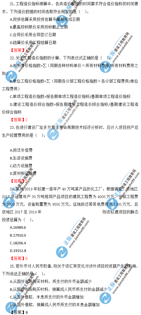 2019年一級造價師《建設工程計價》試題及答案解析21-30