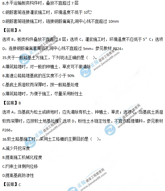 2019年一級造價師《技術(shù)與計量(土建)》試題及答案解析31-40