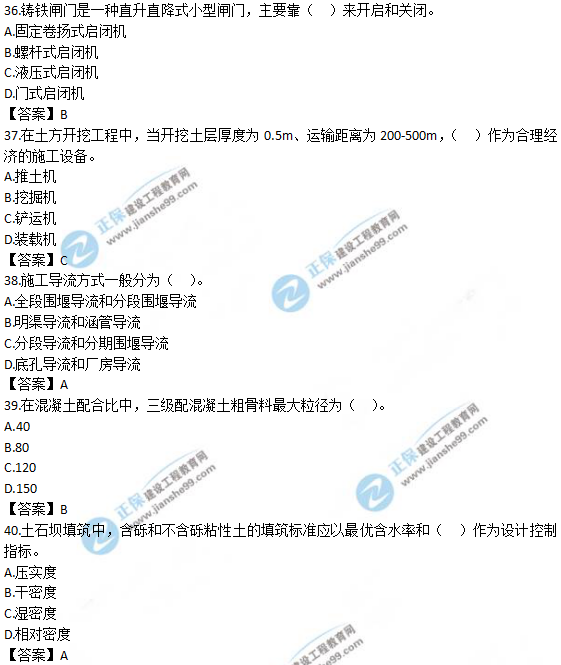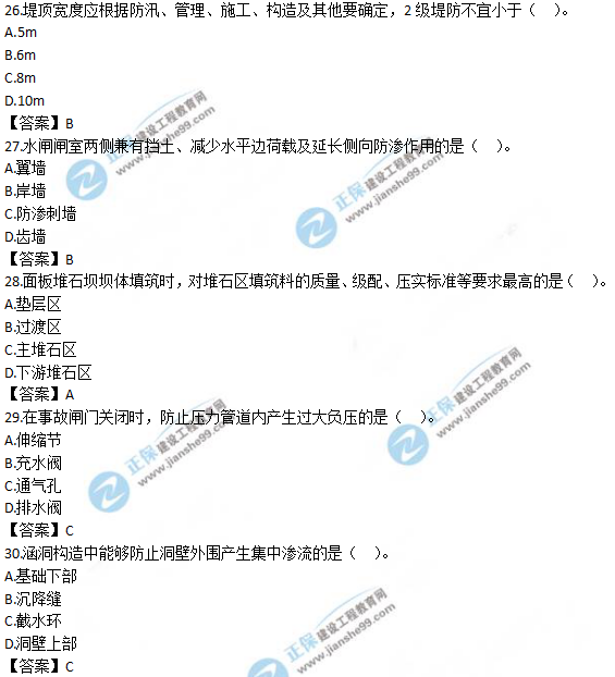 以上就是為大家分享的2019年一級造價師《技術(shù)與計量(水利)》試題及答案解析21-30,建設(shè)工程教育網(wǎng)將持續(xù)關(guān)注2020年一級造價師考試的相關(guān)信息。更多2020年一級造價師考試內(nèi)容,盡在建設(shè)工程教育網(wǎng)一級造價師欄目!