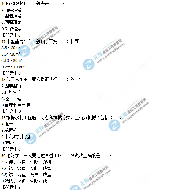 以上就是為大家分享的2019年一級造價師《技術(shù)與計(jì)量(水利)》試題及答案解析41-50,建設(shè)工程教育網(wǎng)將持續(xù)關(guān)注2020年一級造價師考試的相關(guān)信息。更多2020年一級造價師考試內(nèi)容,盡在建設(shè)工程教育網(wǎng)一級造價師欄目!
