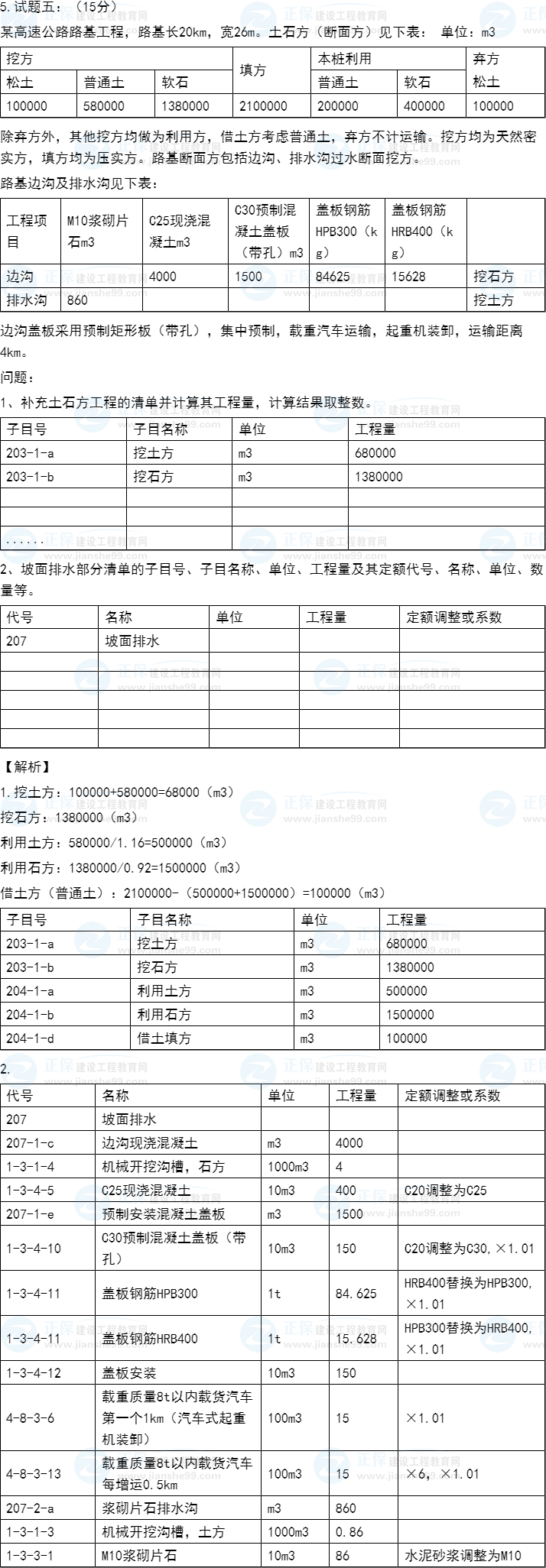 2021年一級(jí)造價(jià)師《交通案例》試題答案及解析五