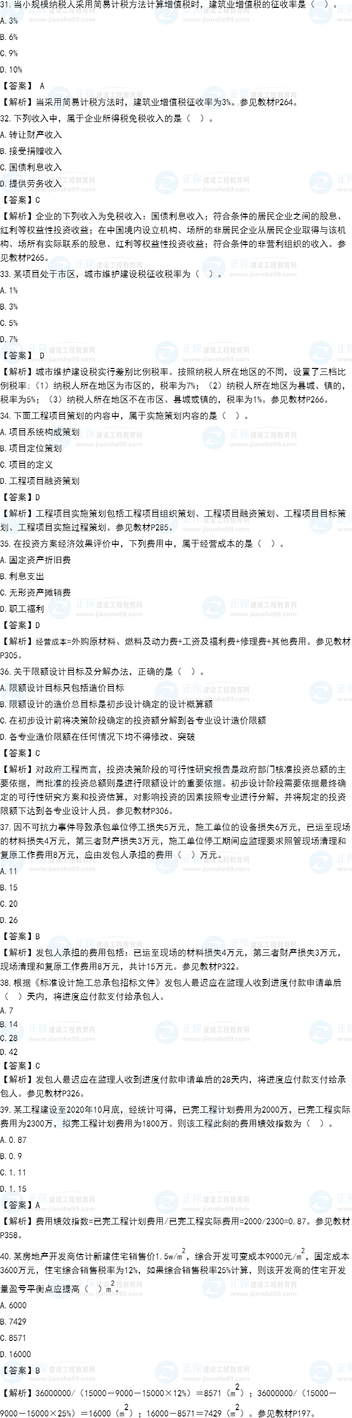 2021年一級(jí)造價(jià)師《建設(shè)工程造價(jià)管理》試題答案及解析31-40