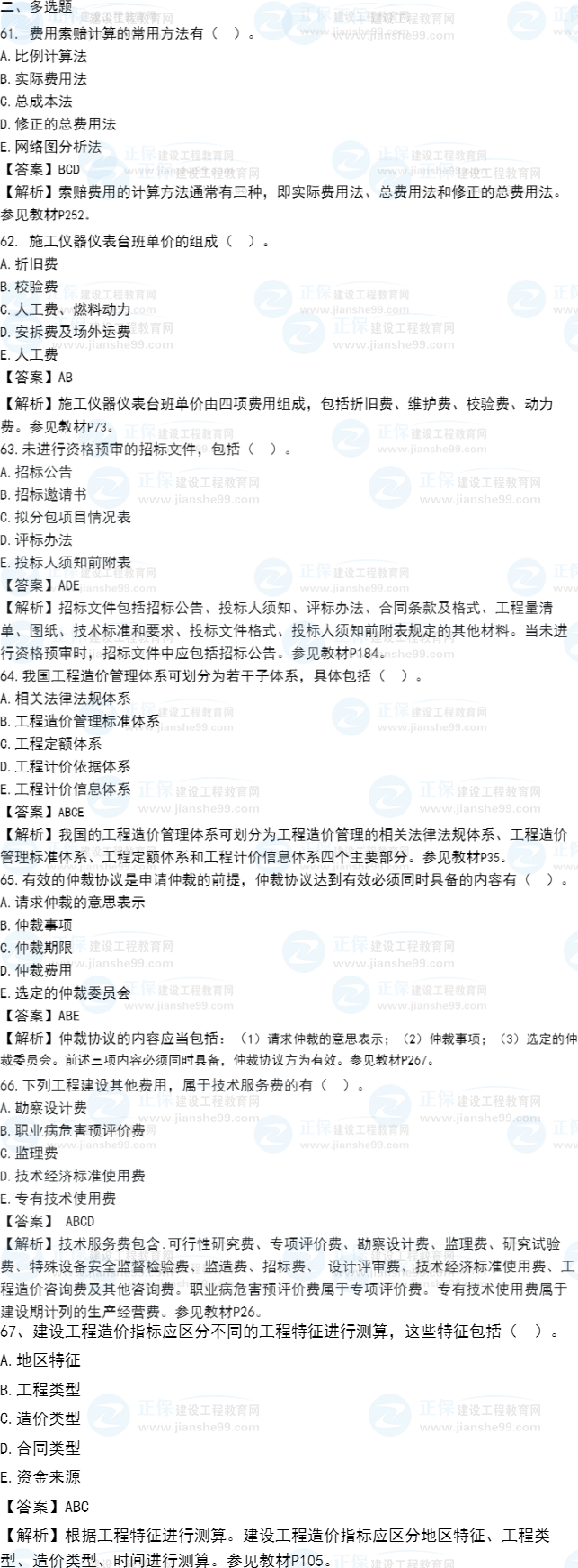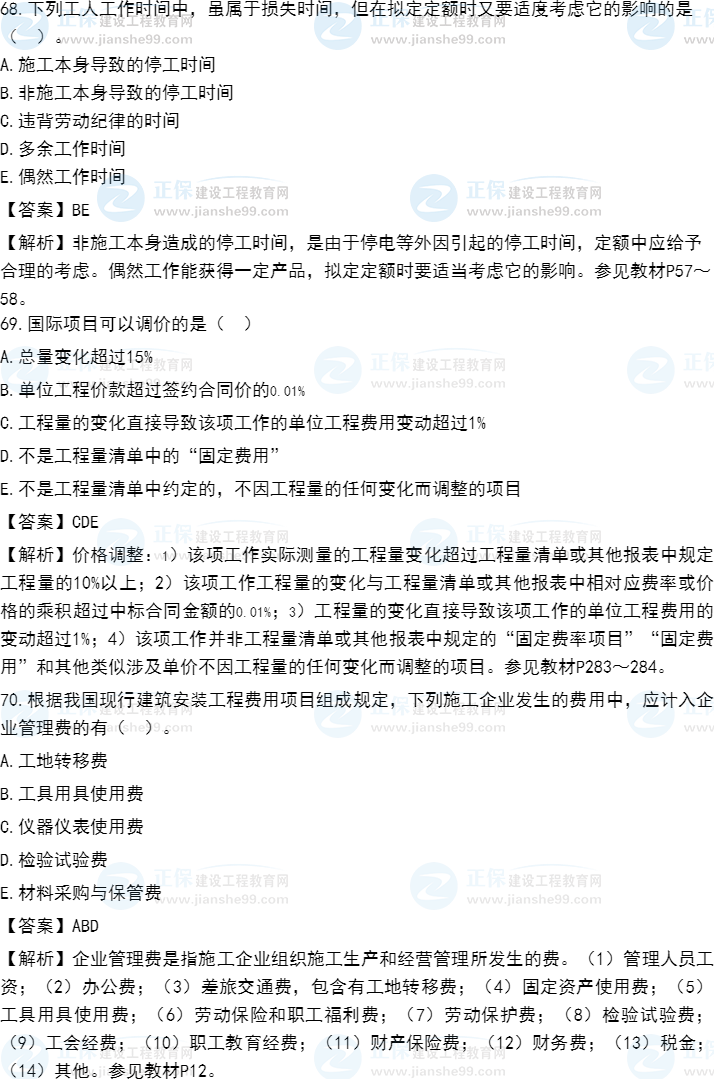 2021年一級(jí)造價(jià)師《建設(shè)工程計(jì)價(jià)?》試題答案及解析61-70