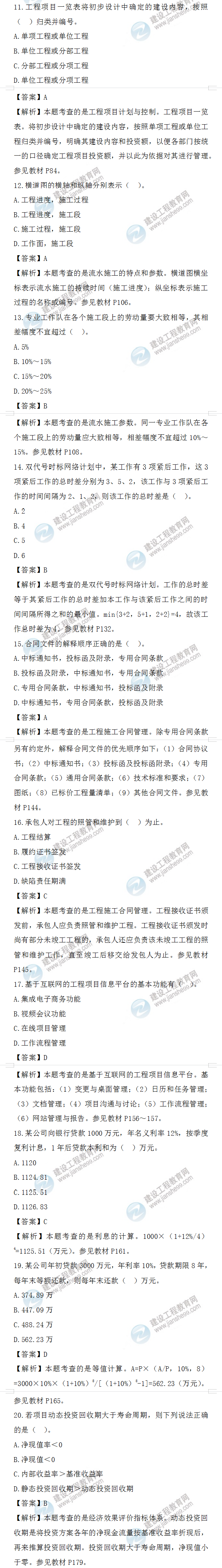 2022年一級造價(jià)師造價(jià)管理試題答案及解析11-20題