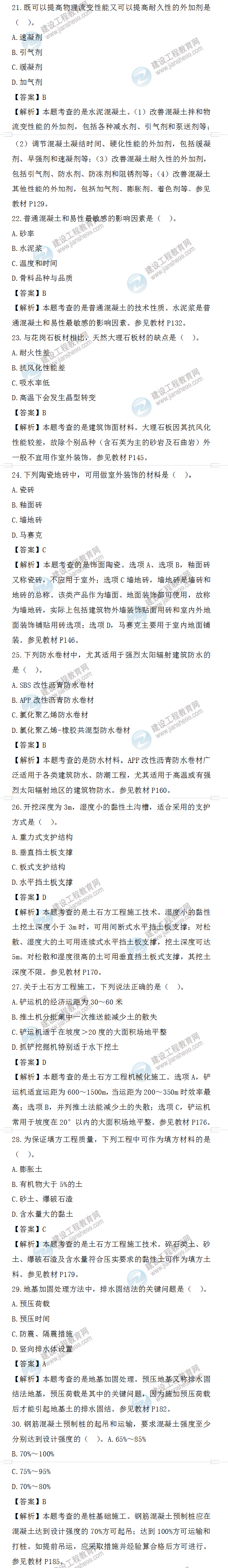 2022年一級(jí)造價(jià)師土建計(jì)量試題答案及解析21-30題