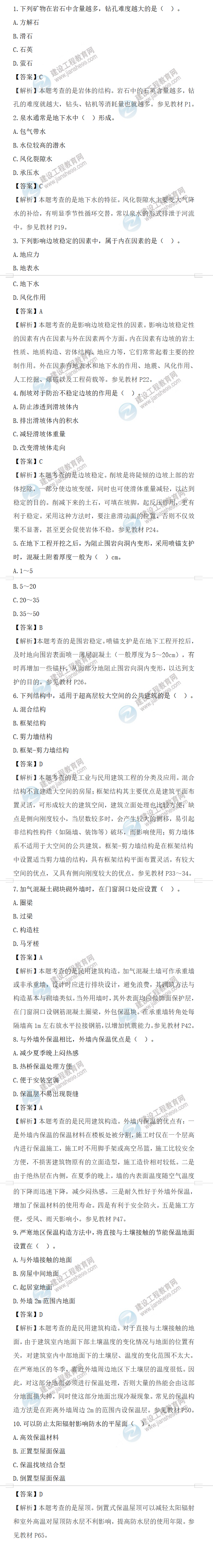 2022年一級造價師土建計量補考試題答案及解析1-10題