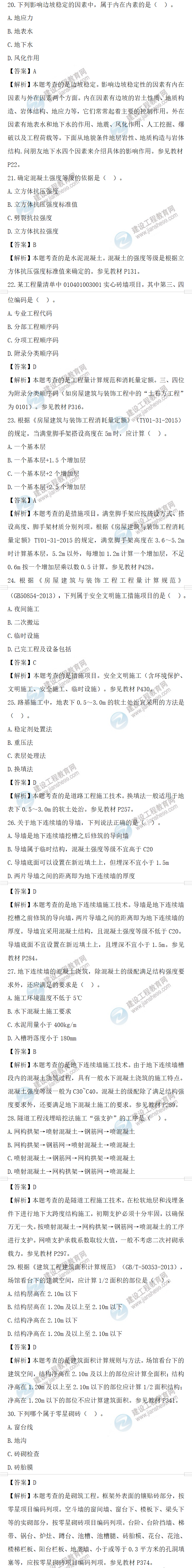 2022年一級(jí)造價(jià)師土建計(jì)量補(bǔ)考試題答案及解析21-30題