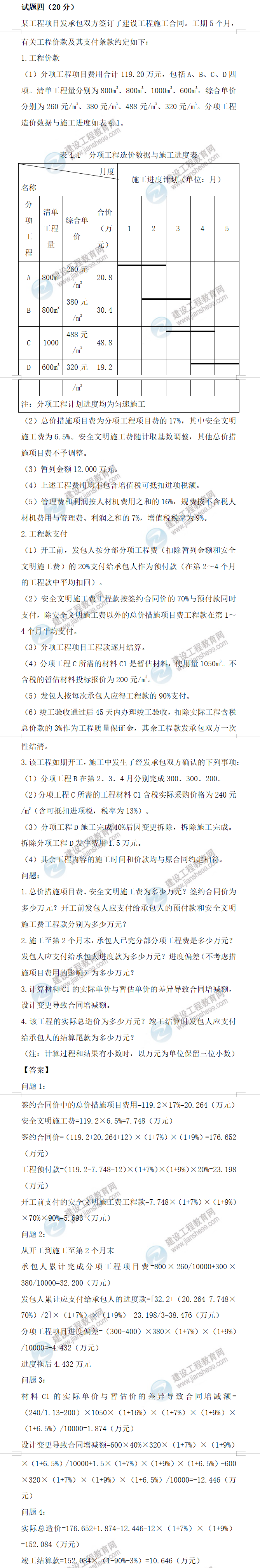 2022年一級(jí)造價(jià)師安裝案例補(bǔ)考試題答案及解析案例四