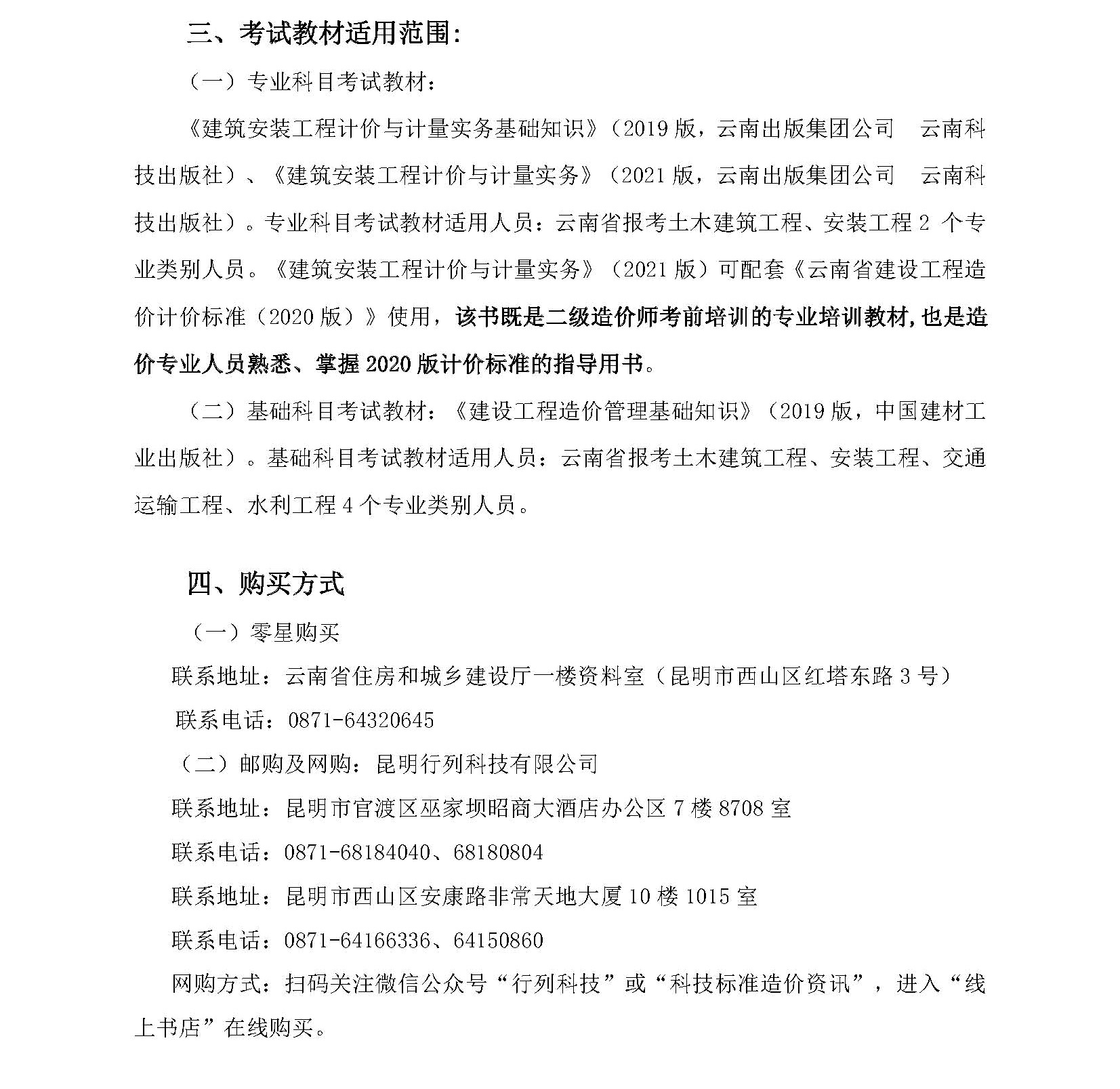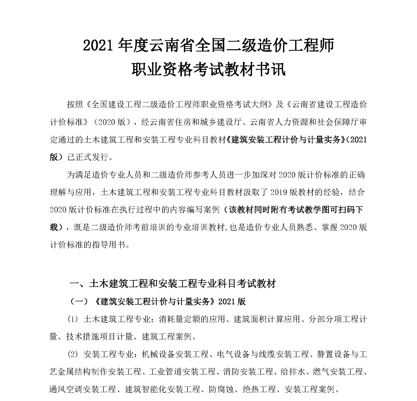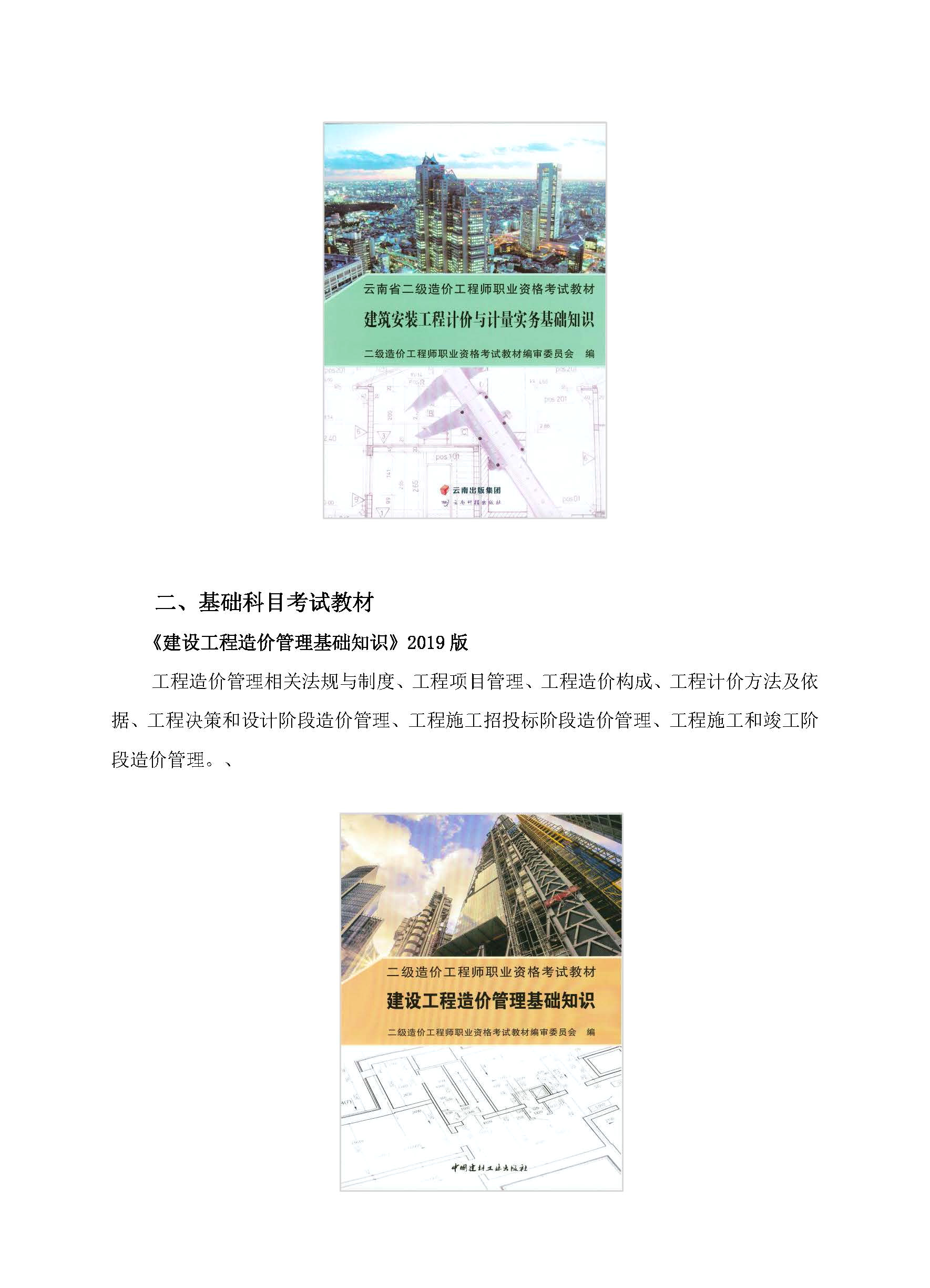2021年云南省二級(jí)造價(jià)工程師考試教材書(shū)訊