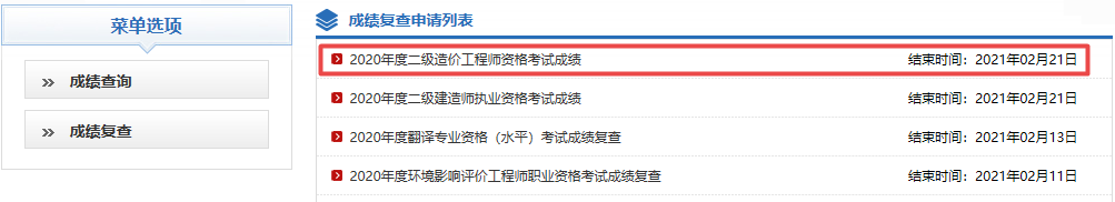2020年度二級造價工程師資格考試成績復(fù)核結(jié)束時間為2021年2月21日,一定注意。