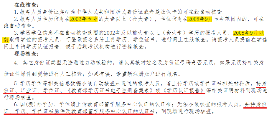 身份或?qū)W歷、學(xué)位信息無法通過自動(dòng)核查的,請(qǐng)?jiān)趫?bào)名時(shí)上傳相關(guān)信息掃描件,以備后期核查。