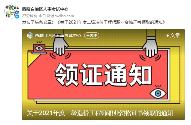 西藏自治區(qū)關(guān)于2021年度二級造價工程師職業(yè)資格證書領(lǐng)取的通知