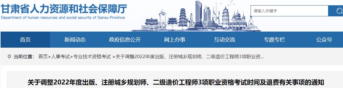 關(guān)于調(diào)整2022年度出版、注冊城鄉(xiāng)規(guī)劃師、二級造價工程師3項職業(yè)資格考試時間及退費有關(guān)事項的通知