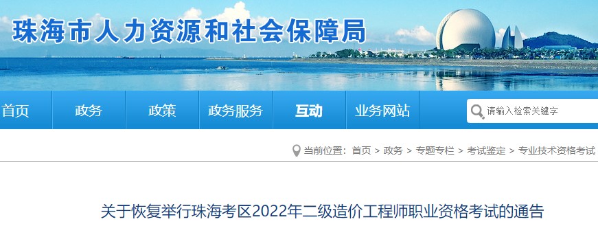 關(guān)于恢復(fù)舉行珠??紖^(qū)2022年二級造價工程師職業(yè)資格考試的通告