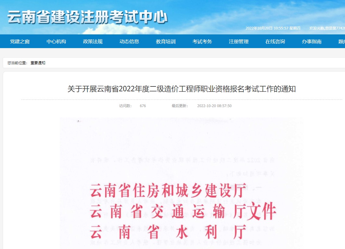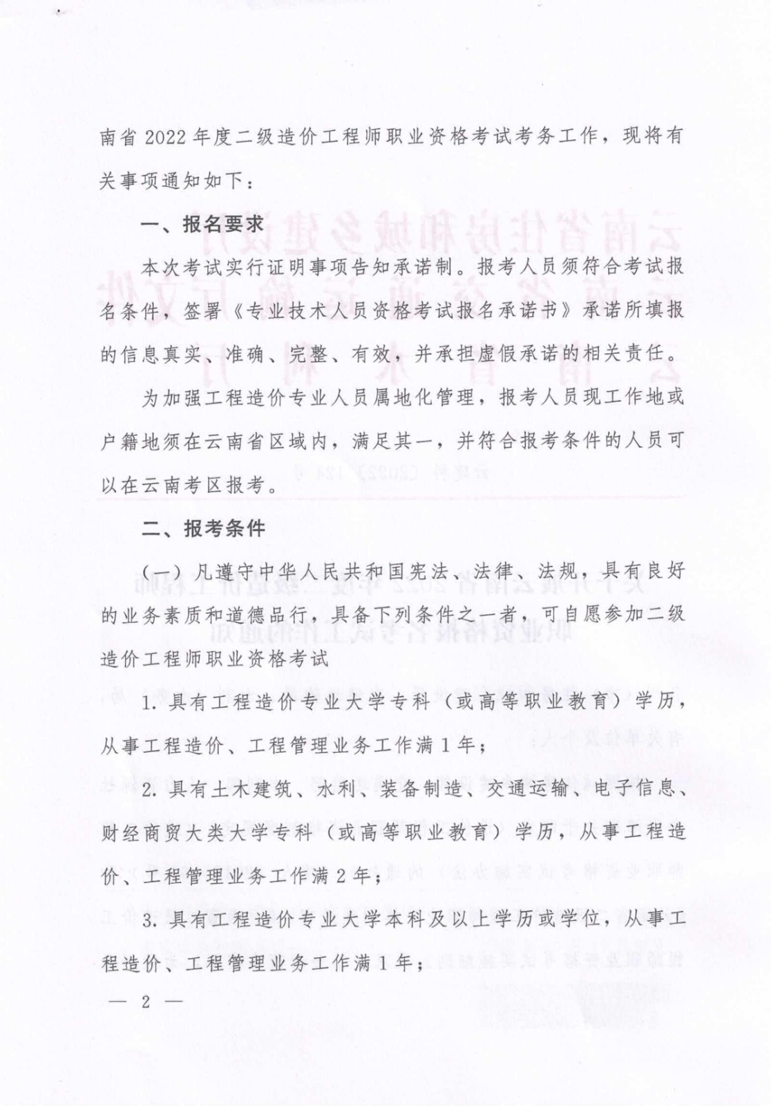 關(guān)于開展云南省2022年度二級(jí)造價(jià)工程師職業(yè)資格報(bào)名考試工作的通知