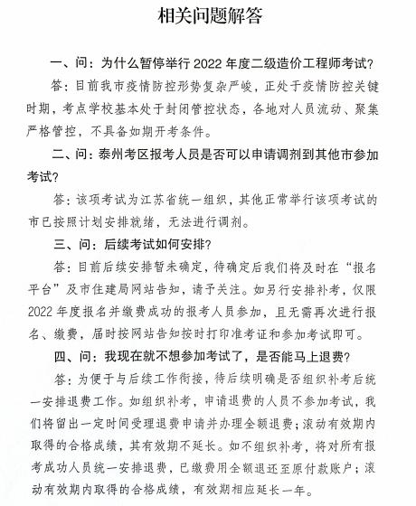 關(guān)于泰州考區(qū)暫停舉行2022年度江蘇省二級(jí)造價(jià)師職業(yè)資格考試的緊急通知