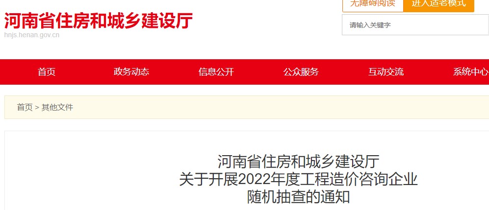 河南住建廳關(guān)于開展2022年度工程造價(jià)咨詢企業(yè)隨機(jī)抽查的通知
