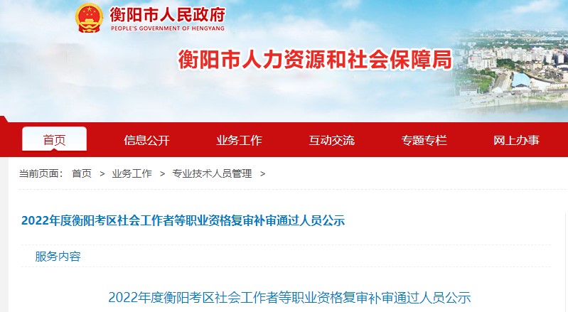 2022年度衡陽考區(qū)社會工作者等職業(yè)資格復(fù)審補審?fù)ㄟ^人員公示