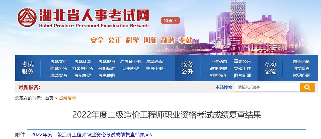 湖北省2022年度二級造價師職業(yè)資格考試成績復查結(jié)果的通知