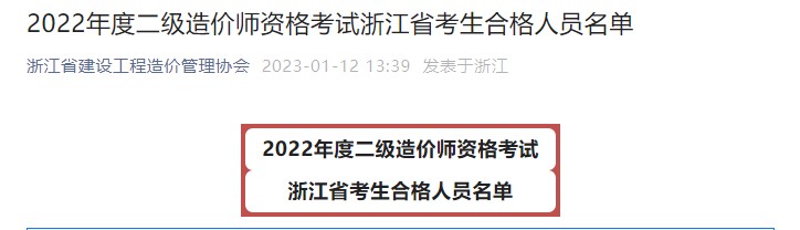 浙江省公布2022年二級造價師考試合格人員名單的通知