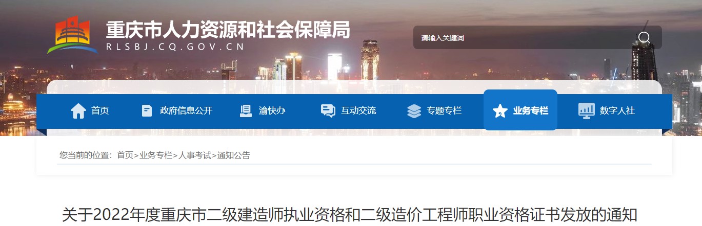 關(guān)于2022年度重慶市二級建造師執(zhí)業(yè)資格和二級造價(jià)工程師職業(yè)資格證書發(fā)放的通知