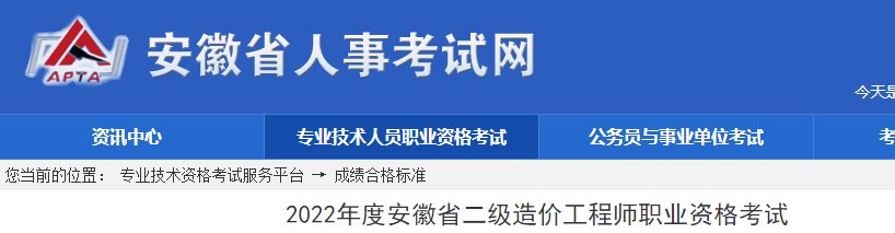 安徽省2022年二級造價師考試成績合格標準已公布