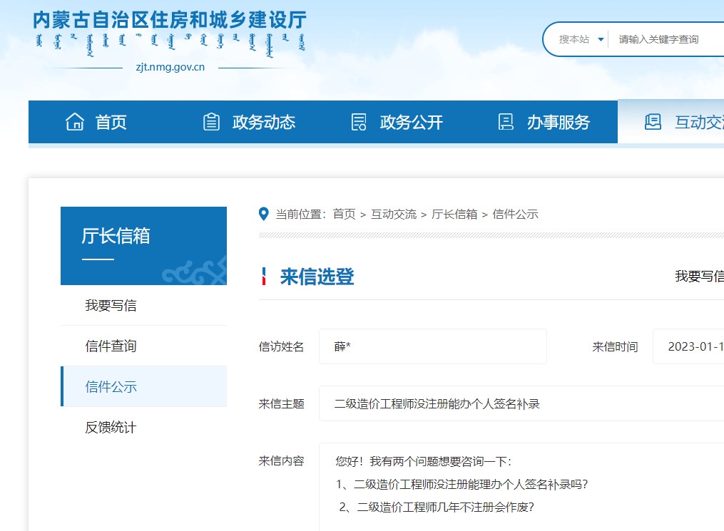 二級(jí)造價(jià)師沒(méi)注冊(cè)能辦理個(gè)人簽名補(bǔ)錄嗎?近日內(nèi)蒙古發(fā)布二造的簽名補(bǔ)錄通知后,有同學(xué)就該問(wèn)題向內(nèi)蒙古住建廳發(fā)問(wèn),并得到了官方回復(fù),一起來(lái)看~