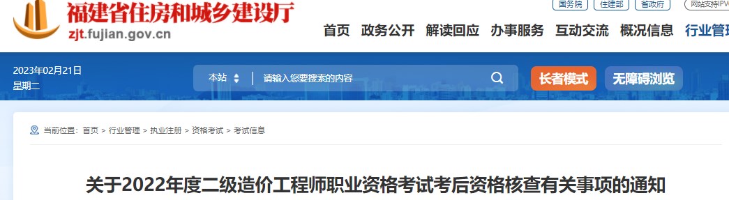 福建省關(guān)于2022年二級(jí)造價(jià)師擬合格人員名單及考試考后資格核查安排