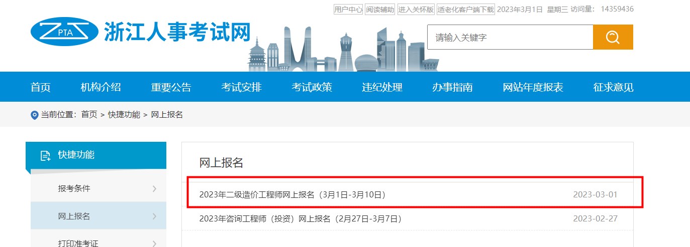 報名入口:浙江人事考試網(wǎng)( )-網(wǎng)上報名-二級造價師考試報名入口
