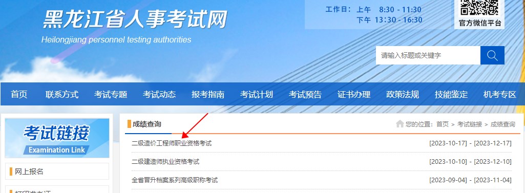 黑龍江省2023年二級(jí)造價(jià)工程師考試成績(jī)查詢?nèi)肟冢汉邶埥∪耸驴荚嚲W(wǎng)-成績(jī)查詢